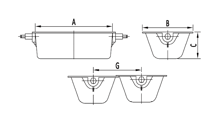 垂直和水平可变向的、装料及卸料均为自由落体方式的链式输送机专用畚斗。