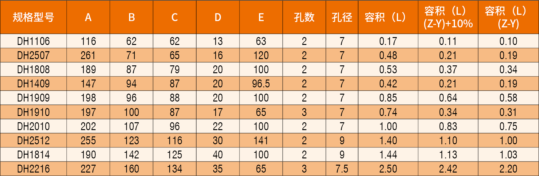 备注:上述DH斗安装孔处均为凹孔或带凸台(DH1814除外),故孔距及孔径均不可调整