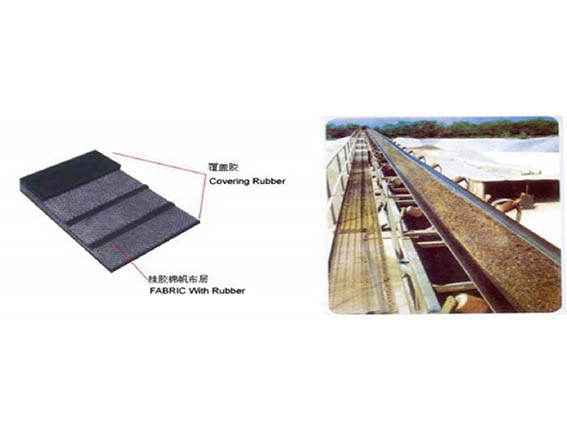 以经、纬向全棉(或涤棉混纺交织)帆布作为骨架层,带体具有柔韧性及成槽性好,而且价格较低于其它材质的输送带。
