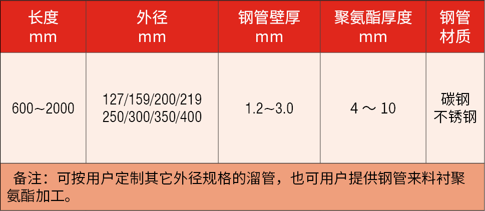 内衬聚氨酯溜管是采用高耐磨聚氨酯原料及离心浇注,经高温硫化把聚氨酯弹性体牢固地覆盖在钢管内壁的产品。可用于粮食类物料的管道输送系统。