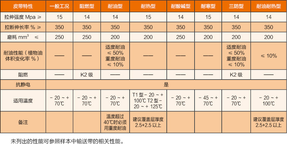 定制提升带种类:一般工况提升机皮带、阻燃型提升机皮带、耐油型提升机皮带、耐热型提升机皮带、耐酸碱型提升机皮带、耐寒型提升机皮带、耐油阻燃抗静电提升带(三防提升带)、耐油耐热型提升机皮带。