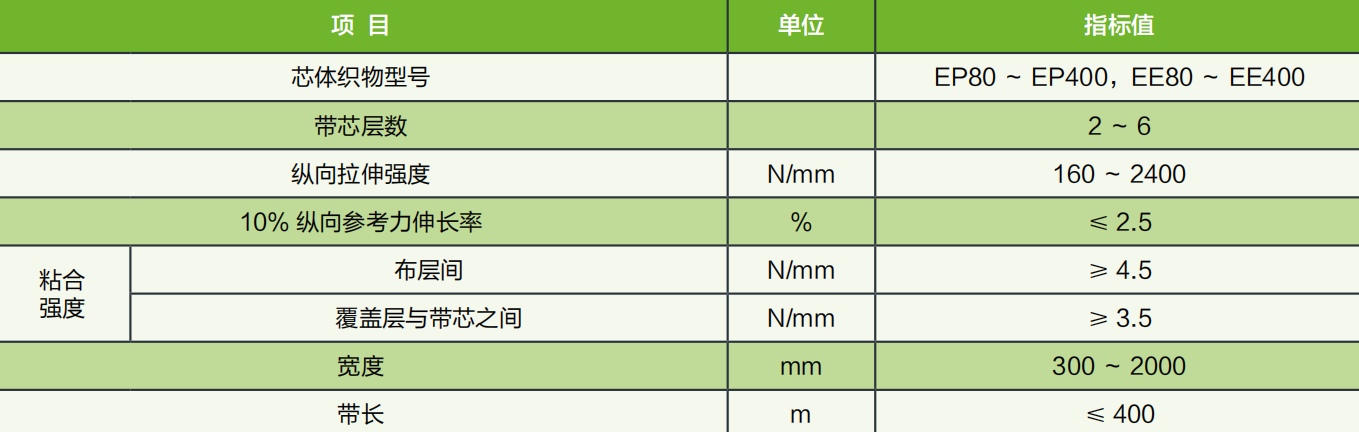 执行GB/T7984-2001《输送带 具有橡胶或塑料覆盖层的普通用途织物芯输送带》标准。