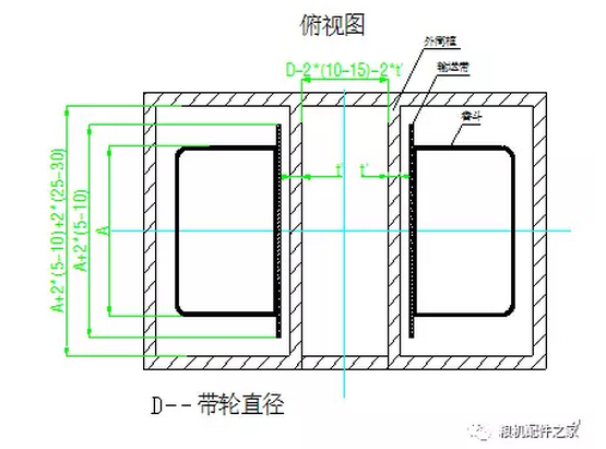 畚斗带长度=2*(头、尾轮中心距)+头轮直径
