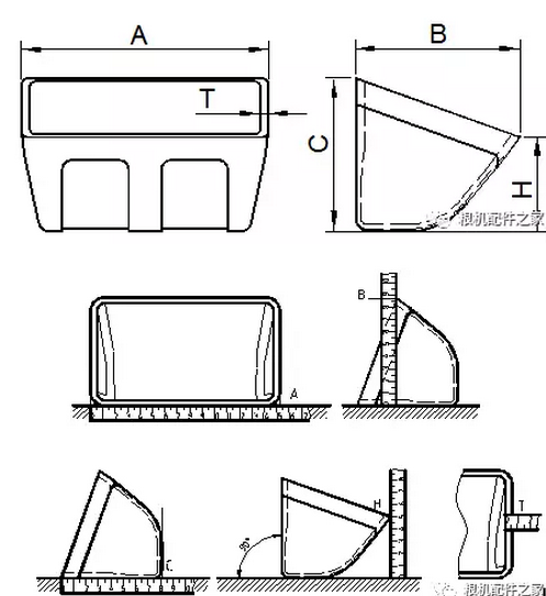 畚斗长宽选择:根据机桶尺寸及畚斗带尺寸选择合适的尺寸。如下图